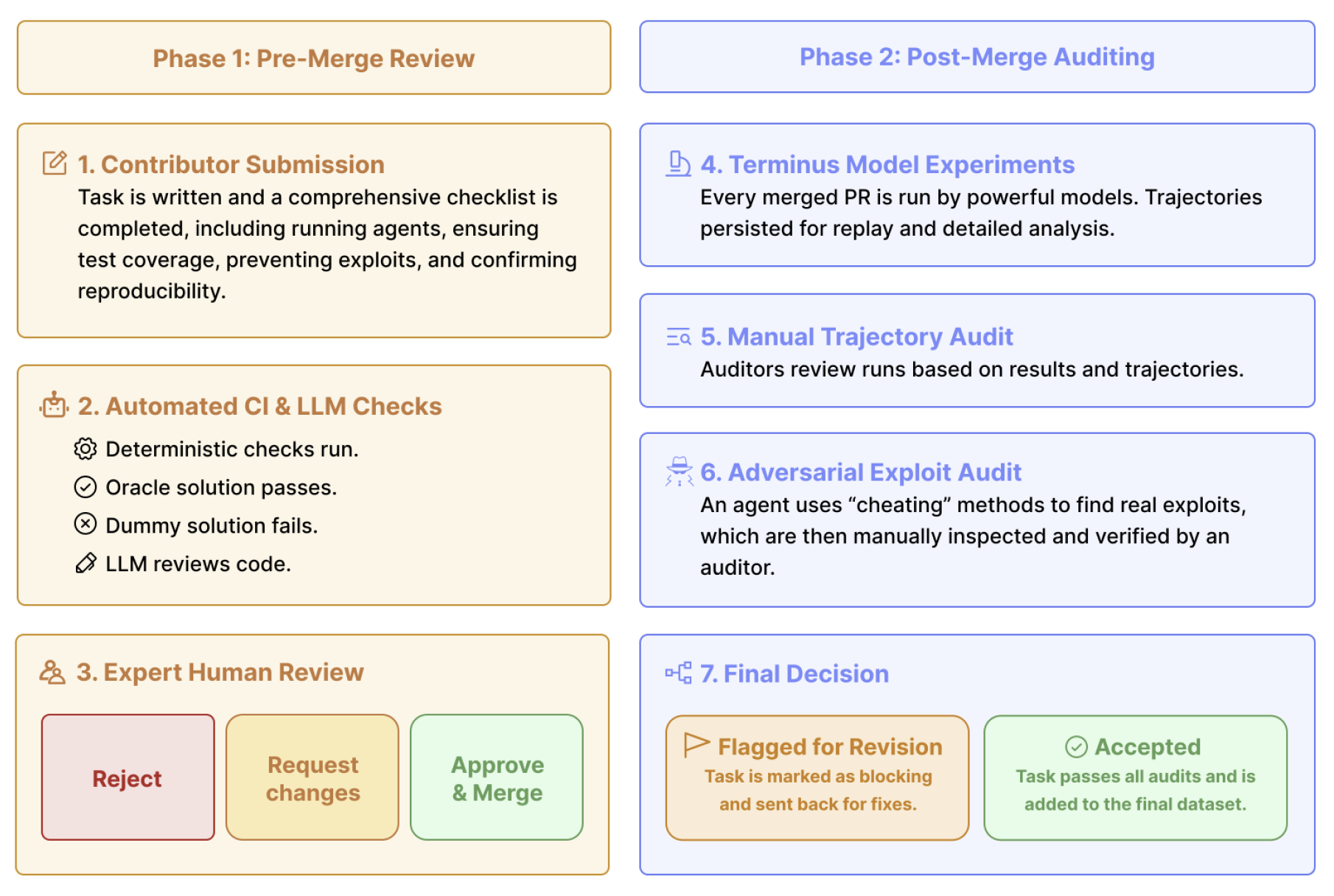To address these problems, we are releasing Terminal-Bench 2.0. Terminal-Bench 2.0 is a harder, better verified version Terminal-Bench. We conducted substantial manual and LM-assisted verification of the dataset to ensure that the tasks were of the highest possible quality. Several labs and data vendors have commented that these are some of the highest quality environments they have seen.